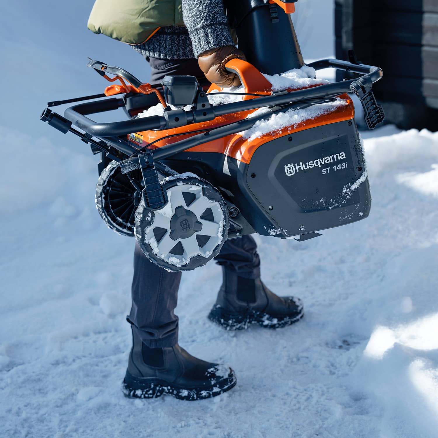 Husqvarna ST 143i er en kompakt og brukervennlig batteridrevet snøfreser for effektiv snørydding. Den er godt egnet for små- og mellomstore gårdsplasser og oppkjørsler. Enkel start og intuitiv betjening gjør arbeidet lett og behagelig. Den lave vekten gir smidig manøvrering også på trange områder. Kompakt design bidrar til god kontroll under hele arbeidsøkten. Sammenleggbart håndtak gjør maskinen enkel å lagre når den ikke er i bruk. Integrert LED-lys gir god sikt og tryggere arbeid i mørke forhold. Snøfreseren er del av Husqvarnas BLi-X system med 36V batteri for flere verktøy.