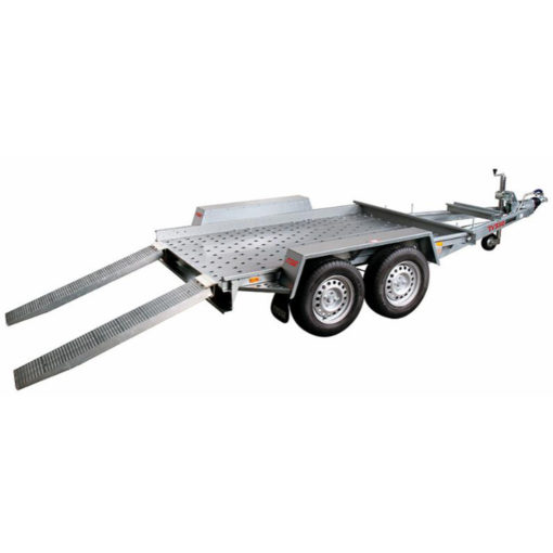 Maskinhenger PRO+ 6342 2600 kg er den minste og rimeligste maskinhengeren vi tilbyr. Om du skal transportere gravemaskiner eller andre små maskiner, du jobber i anleggsbransjen eller driver med utleie av minimaskiner vil du finne en maskinhenger som passer deg her. Akkurat denne har kassemål (L x B x H) på 247 x 160 x 10 cm, totalvekt på 2600 kg og tillatt nyttelast på 2118 kg. Det er altså plass til de fleste minimaskiner. Disse kjøres enkelt på tilhengeren ved hjelp av oppkjøringsskinner som kan justeres i hele bredden på hengeren. Under transport oppbevares disse på tvers fremme på drag. Dessuten er våre maskinhengere lavbygde med lav innlastningshøyde. Dette, i kombinasjon med lav oppkjøringsvinkelen, sikrer trygg og god påkjøring. Konstruksjonen gjør også at tilhengeren ligger svært godt på veien og har eksepsjonelle kjøreegenskaper. Maskinen står stabilt og trygt på den hele bunnen da den festes med jekkestropper. Stroppene festes i perforerte hull i bunnen som fungerer som surrefester. Denne modellen har brems. I tillegg har den langt v-drag (230 cm fra forkarm til kule), som gir bedre stabilitet, retningsstabilitet og reduserer risiko for skade på bil. Det gjør særlig rygging lettere. Tysse anvender innfesting i tre punkter fra draget til rammen på hengeren. God passform og solid innfesting er viktig for god friksjonsflate mellom delene, alt dette for å unngå unødig vibrasjon. Til draget er det montert maskinskuffehviler samt holdere for oppkjøringsskinner. Tilhengeren leveres med 14″-helårsdekk. Denne modellen har også LED-lys og nesehjul som forenkler av- og påkobling av tilhenger.