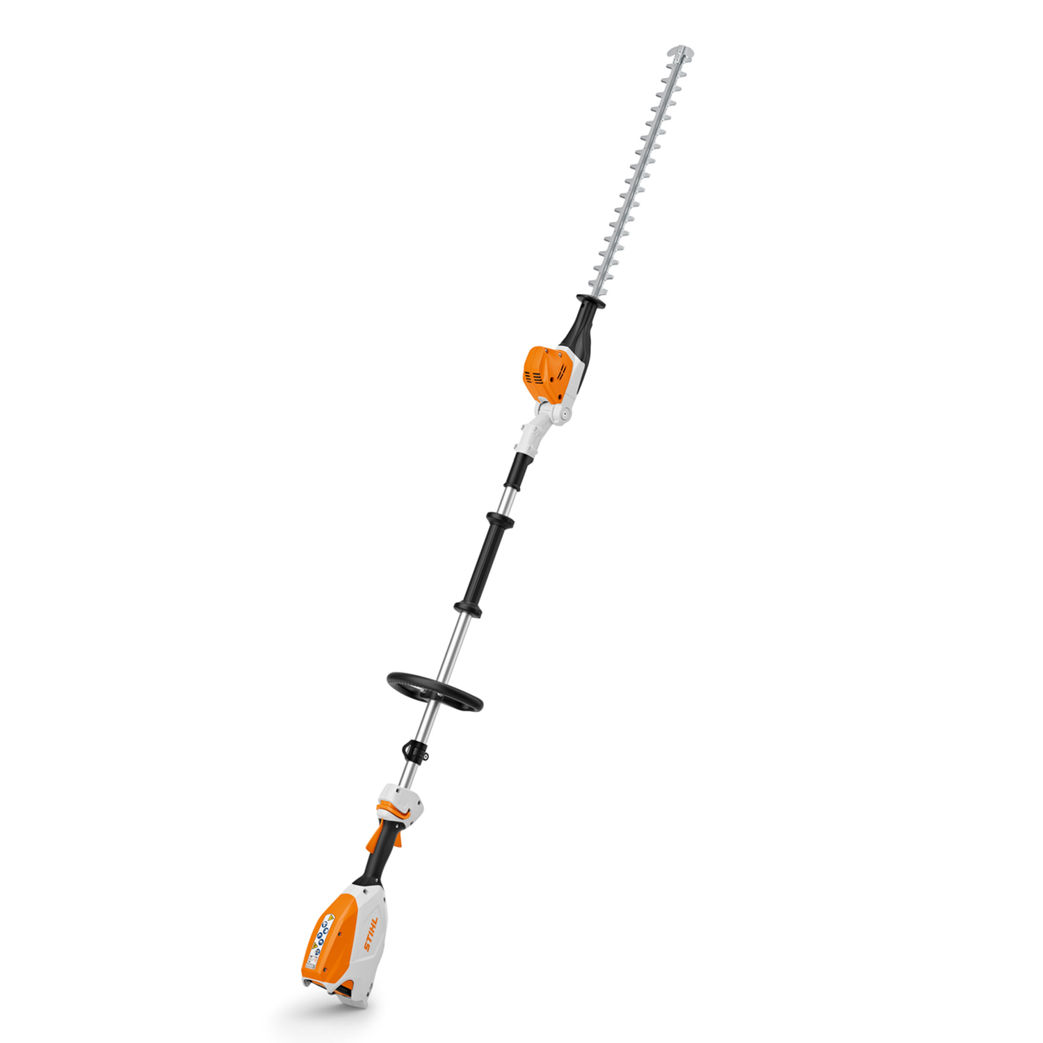 HLA 66 er en langskaftet batteridrevet hekksaks som er perfekt til klipping av høye og brede hekker. Du kan nemlig dreie det dobbeltsidige knivsverdet 115°, og på den måten tilpasse saksen for topp-, side- og bakkeklipping. På tuppen av kniven er det en standard styrebeskyttelse som hindrer skade ved kontakt med bakken, vegger, murer eller andre hindringer. Uansett arbeid utføres det effektivt takket være konstant knivslag og den børsteløse elektromotoren som alltid forsynes med optimal ytelse til batteriet som er satt inn. For trygg og praktisk transport og oppbevaring kan du legge sammen saksen og sette på knivbeskyttelsesdekselet som følger med. Leveres uten batteri og lader.