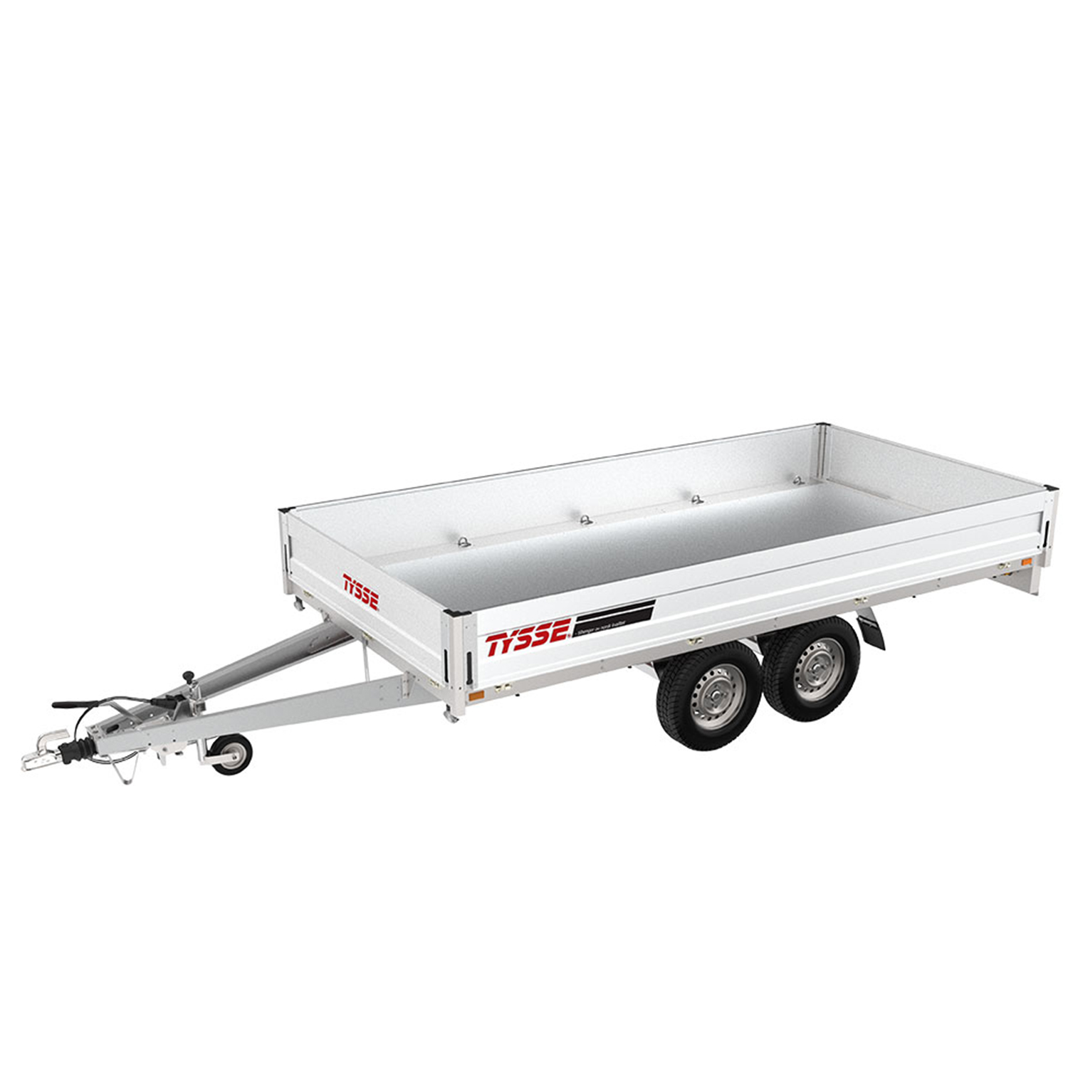 Varehenger PRO+ 6394 NF 2600 kg er en varehenger i kategorien PRO+ med nedfellbare sider som passer til røff og profesjonell bruk. Dette, sammen med tilhengerens kraftige konstruksjon, gjør at du kan frakte tungt utstyr eller større og fler gjenstander. Proffmodellene er til og med konstruert for transport av minimaskiner. Den har kassemål (L x B x H) på 366 x 180 x 35 cm, totalvekt på 2600 kg og tillatt nyttelast på 1976 kg. Tilhengeren har bremser. Ellers har den også mange andre brukerfordeler. Den mest fremtredende på denne modellen er nedfellbare karmer. Alle de 35 cm høye aluminiumskarmene kan legges ned slik at man får slett plan, noe som blant annet forenkler lasting og lossing av tilhengeren. Takket være innfelte karmlåser er det simpelt og trygt å ta av og på karmene. Hjørnestolpene er i tillegg avtakbare. Tilhengerbunnen består av en 12 mm finerplate beslått med en 1,5 mm aluminiumsplate. Denne kraftige bunnkonstruksjonen forsterker og forlenger levetiden på tilhengeren. På sidene av bunnen finnes det stålskinner med nedfelte, kraftige surreringer. Surrefestene er festet til en stålplate, noe som gir mye bedre forankring enn når de festes i finér. Hvert surrefeste er sertifisert og godkjent for 800 kg. Lastestroppene du bruker må være CE-merket, for deg og alle andre trafikanters sikkerhet. Understell er helsveiset og varmgalvanisert. Rammevanger og V-drag har 3 mm platetykkelse, og er knekt som en C-profil oppe og nede. Proffhengerne har dessuten sveist lysbrett og flere kryss- og støttebraketter under sideskjørt. For å kjøre trygt både i dagslys og i mørket er tilhengeren utstyrt med 13-pol-støpsel som gir både tåke- og ryggelys. For at disse lysene skal fungere kreves det 13-polet-kontakt på bilen. Tilhengeren leveres med 13″-helårsdekk. Denne modellen har også LED-lys, skvettlapp som forhindrer steinsprut og slitasje, og nesehjul som forenkler av- og påkobling av tilhenger.